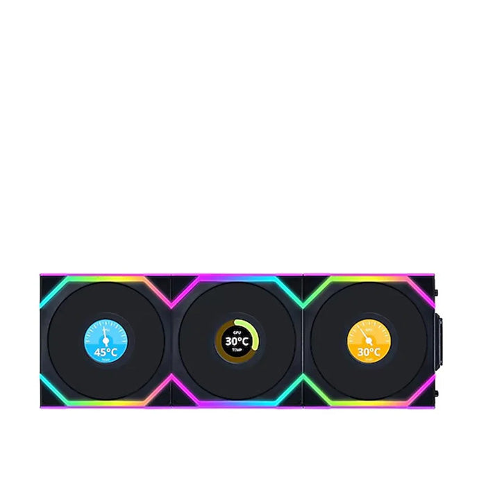 LIAN LI UNI FAN TL LCD Reverse Blade 120mm ARGB Cooling Fan with 1.6" LCD Screen (Pack of 3) - Black